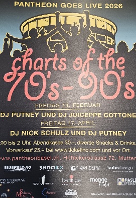 Es glitzert und dreht sich die Diskokugel in der Rundhalle des Pantheon Basel zur Musik der Charts der Siebziger bis und mit Neunziger Jahre.